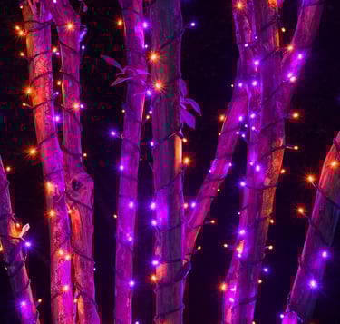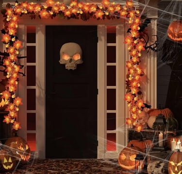 If you want even more glow, check out these Halloween String Lights. With 300 LEDs in purple and orange, they’re ideal for wrapping around trees, hanging across porches, or brightening up your living room for a Halloween party. The eight lighting modes let you customize the ambiance—from slow glowing to fast flickering—for that ultimate spooky effect.