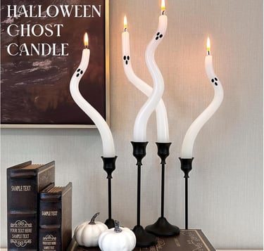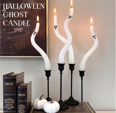 Nothing sets the mood quite like flickering candlelight. For Halloween, swap out your everyday candles with these Halloween Ghost Taper Candles. This set of 4 ghost candles makes a playful yet spooky statement on your dining table, fireplace mantle, or entryway. Their twisted design adds a touch of eerie elegance, making them the perfect centerpiece for a Halloween gathering.