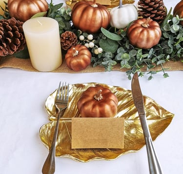 Pumpkins are the heart of fall decorating. This Set of 12 Faux Metallic Pumpkins adds instant autumn charm without the mess of real pumpkins. With metallic bronze finishes, they’re stylish enough to use as table centerpieces, mantle accents, or even scattered across your porch steps. Plus, they last year after year.