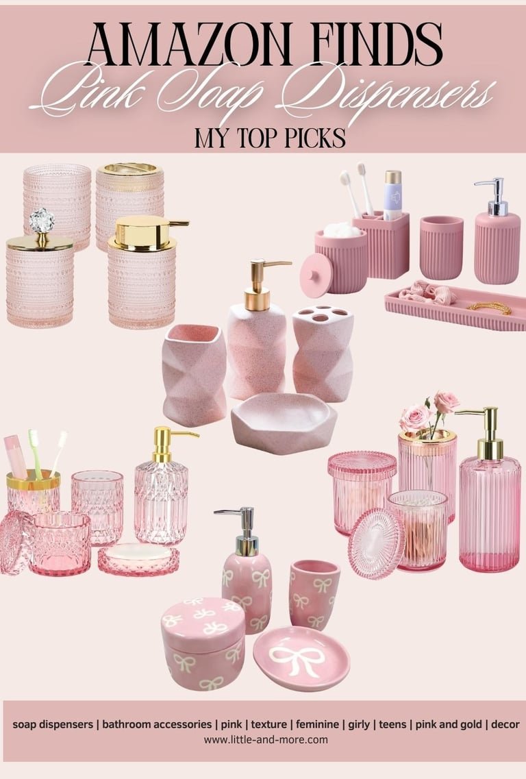 Whether you’re decorating your first apartment, styling a dorm bathroom, or just want to add some playful touches to your home, these pink soap dispensers and bathroom accessories are the perfect way to elevate your space.